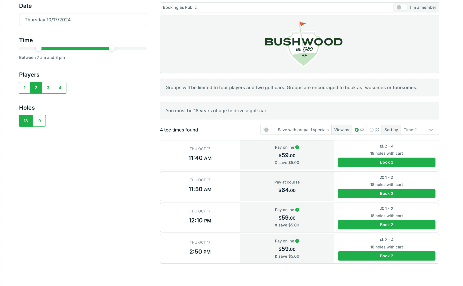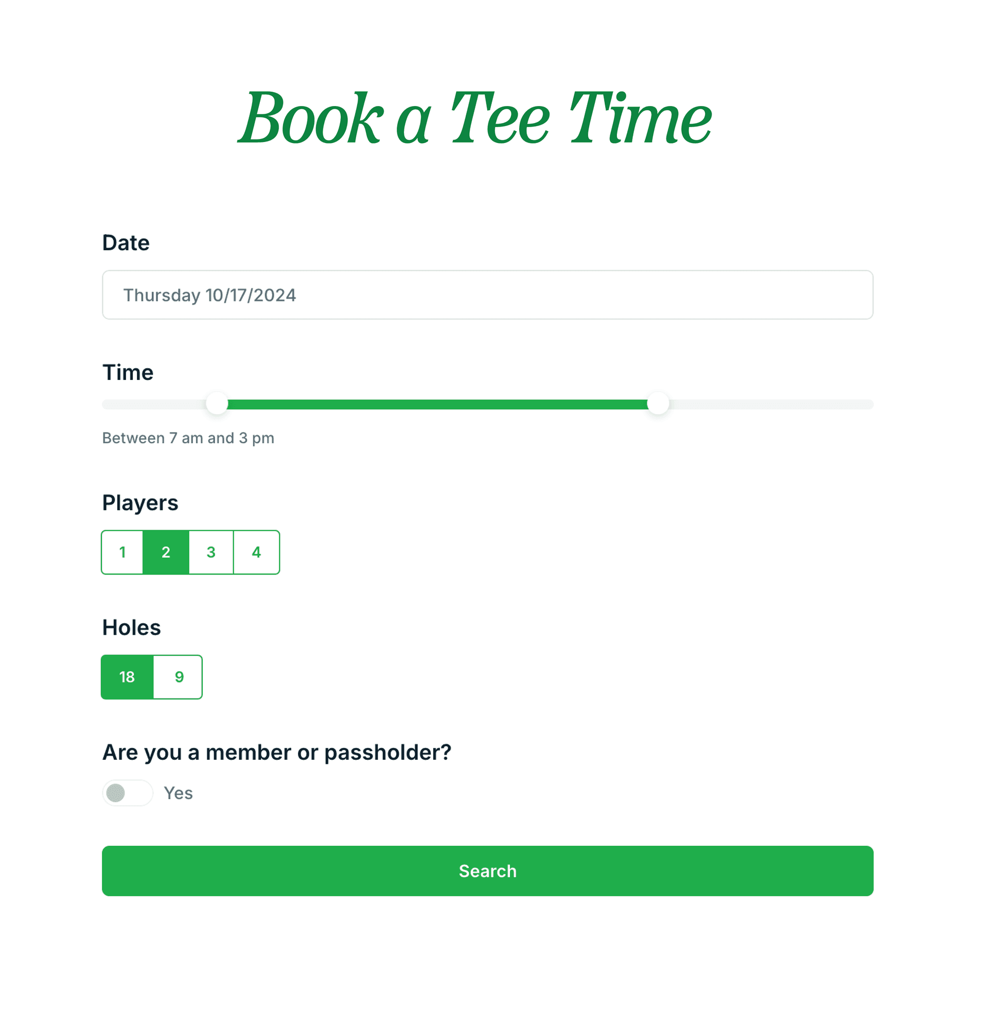 Powerful booking engine with 24/7 access, tee sheet integration & full pricing control.